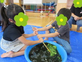 5歳さんの家庭教育学級で「藍染め」を行いました。